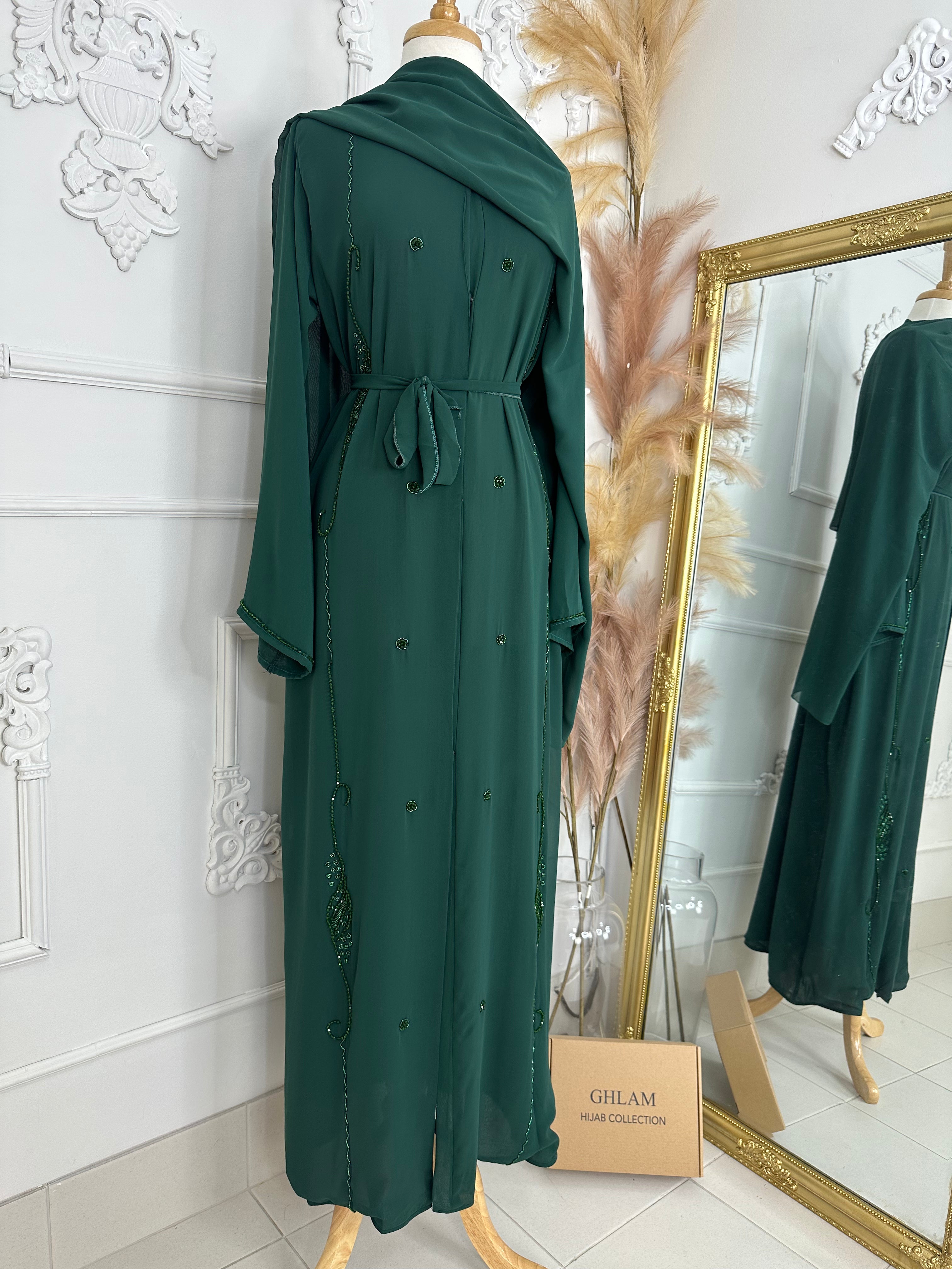Abaya's are generally a loose-fitting and full length garment. All our abayas come in a freesize fitting with a variety of lengths. Please measure using the size chart below.