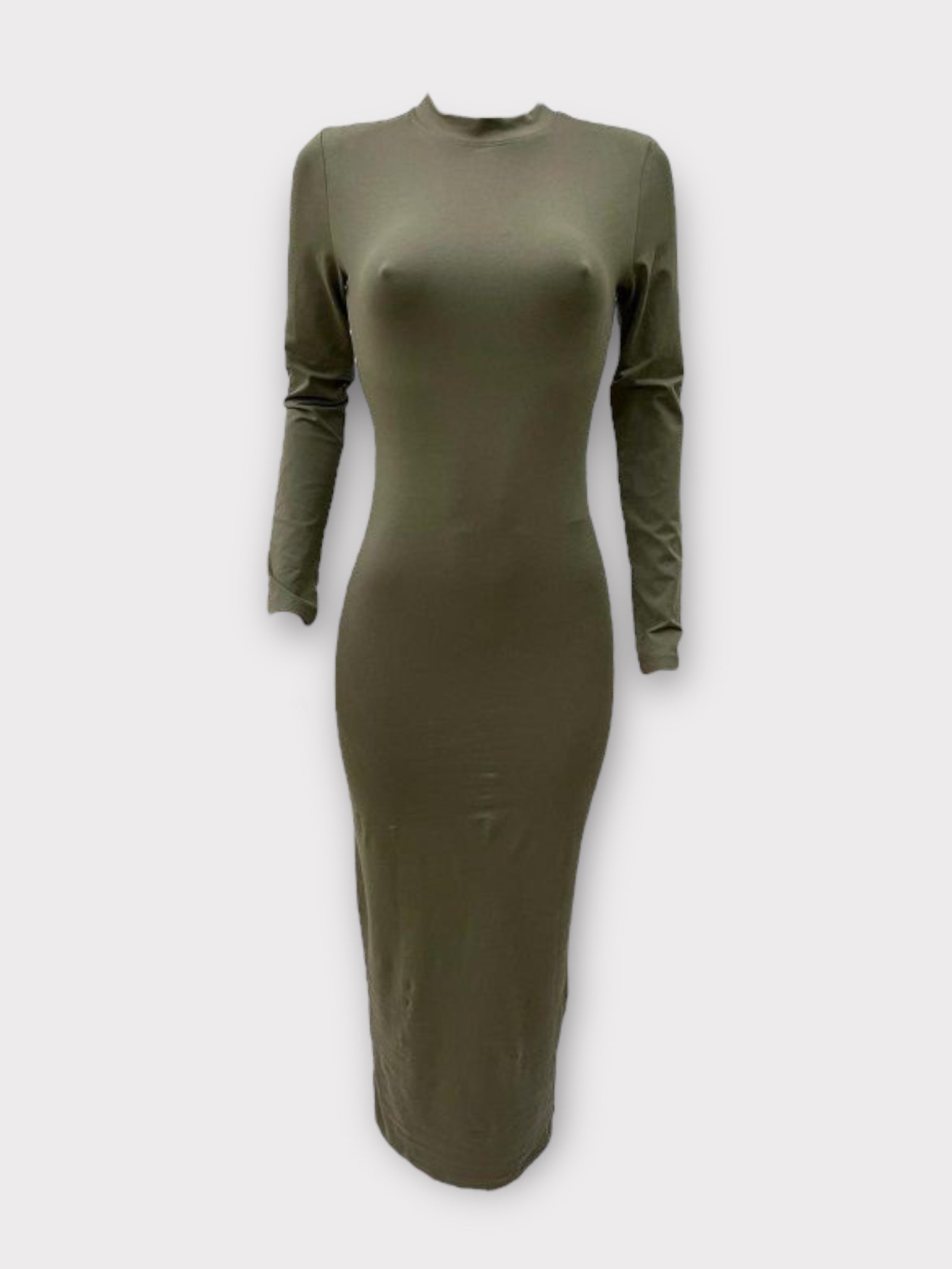The mixed cotton maxi dress perfectly glides over the body to create perfect garment for layering.