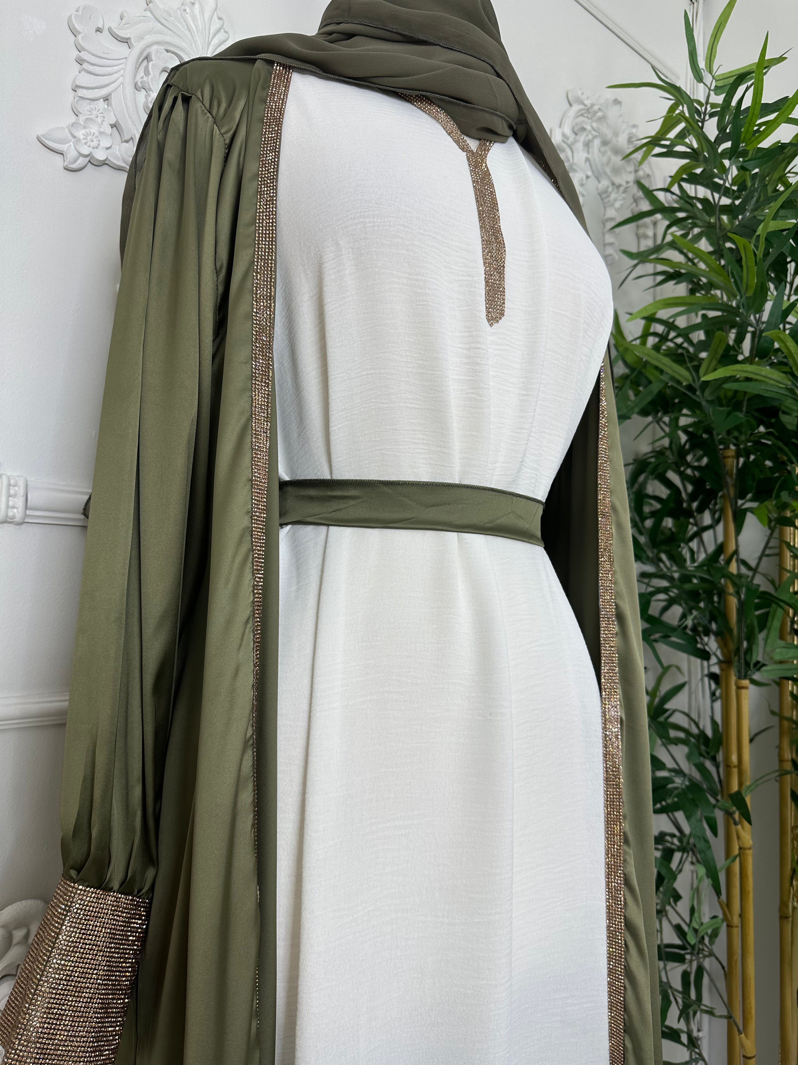 Abaya's are generally a loose-fitting and full length garment. All our abayas come in a free sized fitting with a variety of lengths. Please measure using the size chart below.