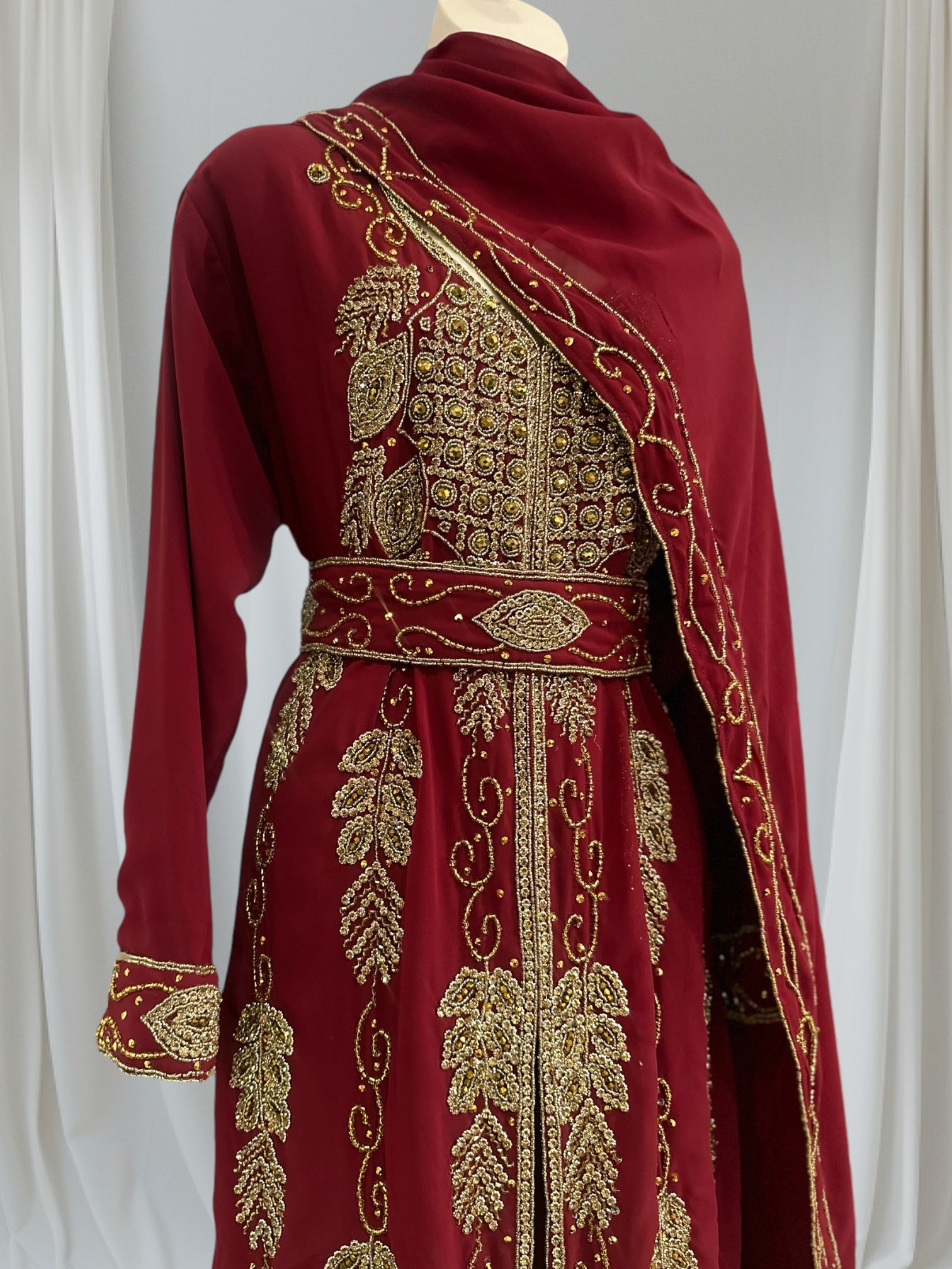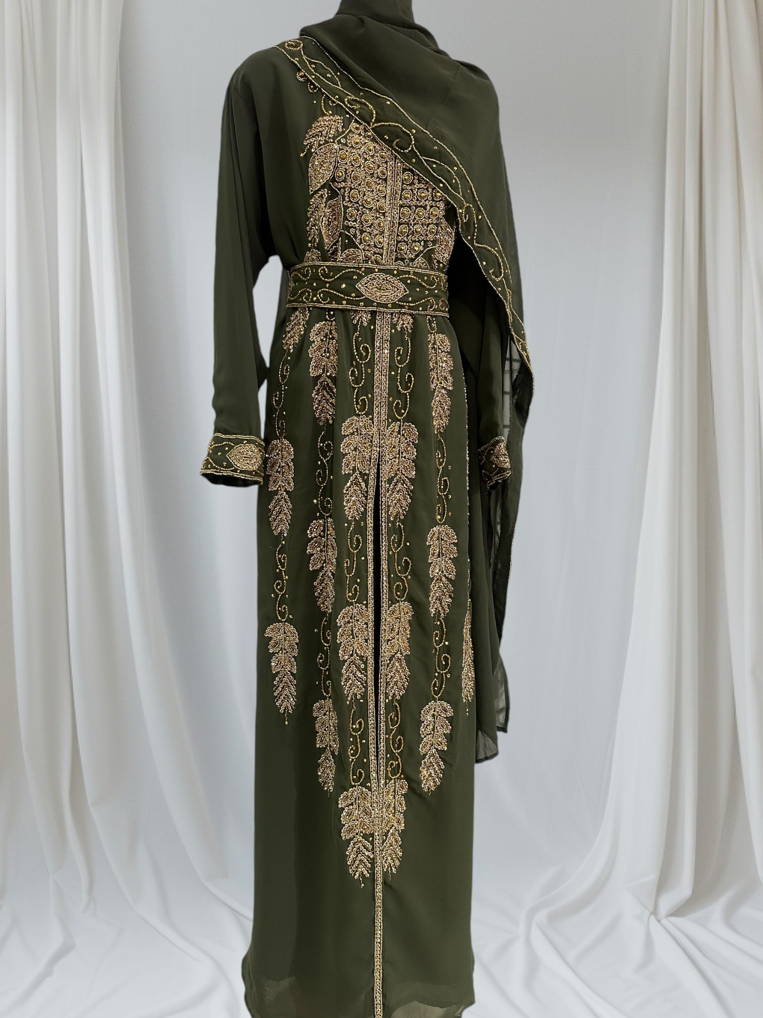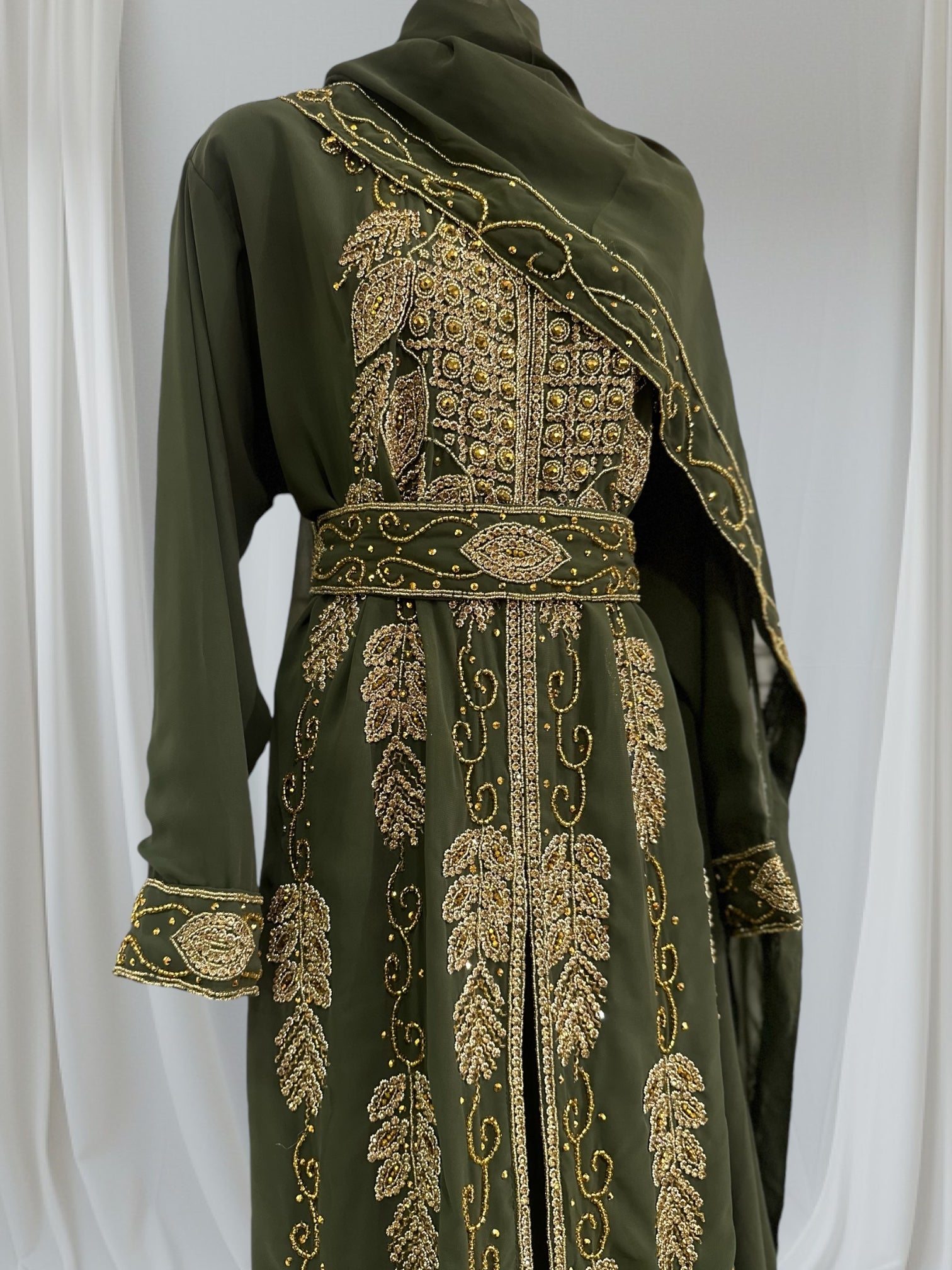 HIRA abaya is crafted with hand work, ensuring that every inch is meticulously designed and crafted to perfection, adding a touch of elegance and glamour to your outfit. This masterpiece is perfect for any special occasions.