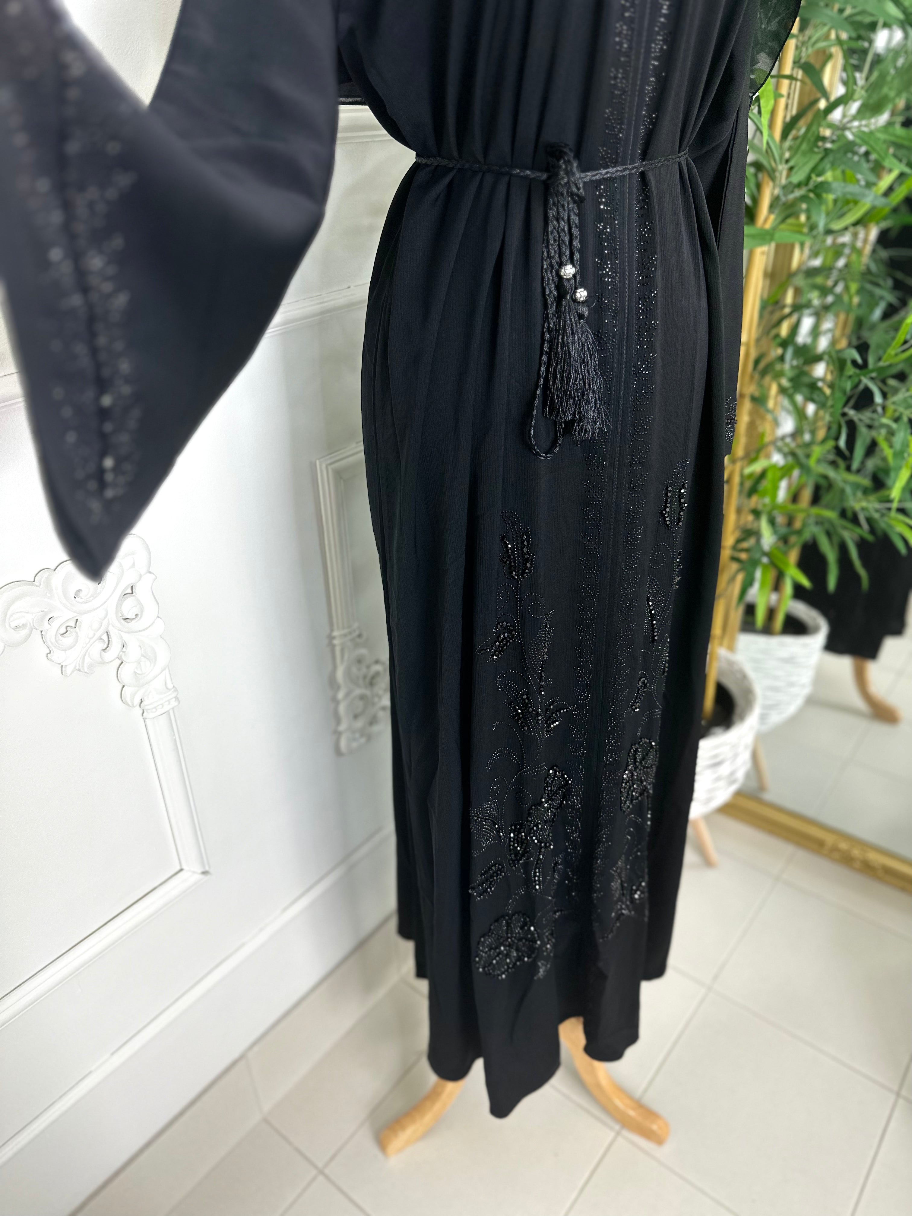 Abaya's are generally a loose-fitting and full length garment. All our abayas come in a freesize fitting with a variety of lengths. Please measure using the size chart below.
