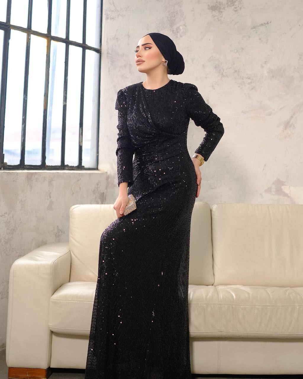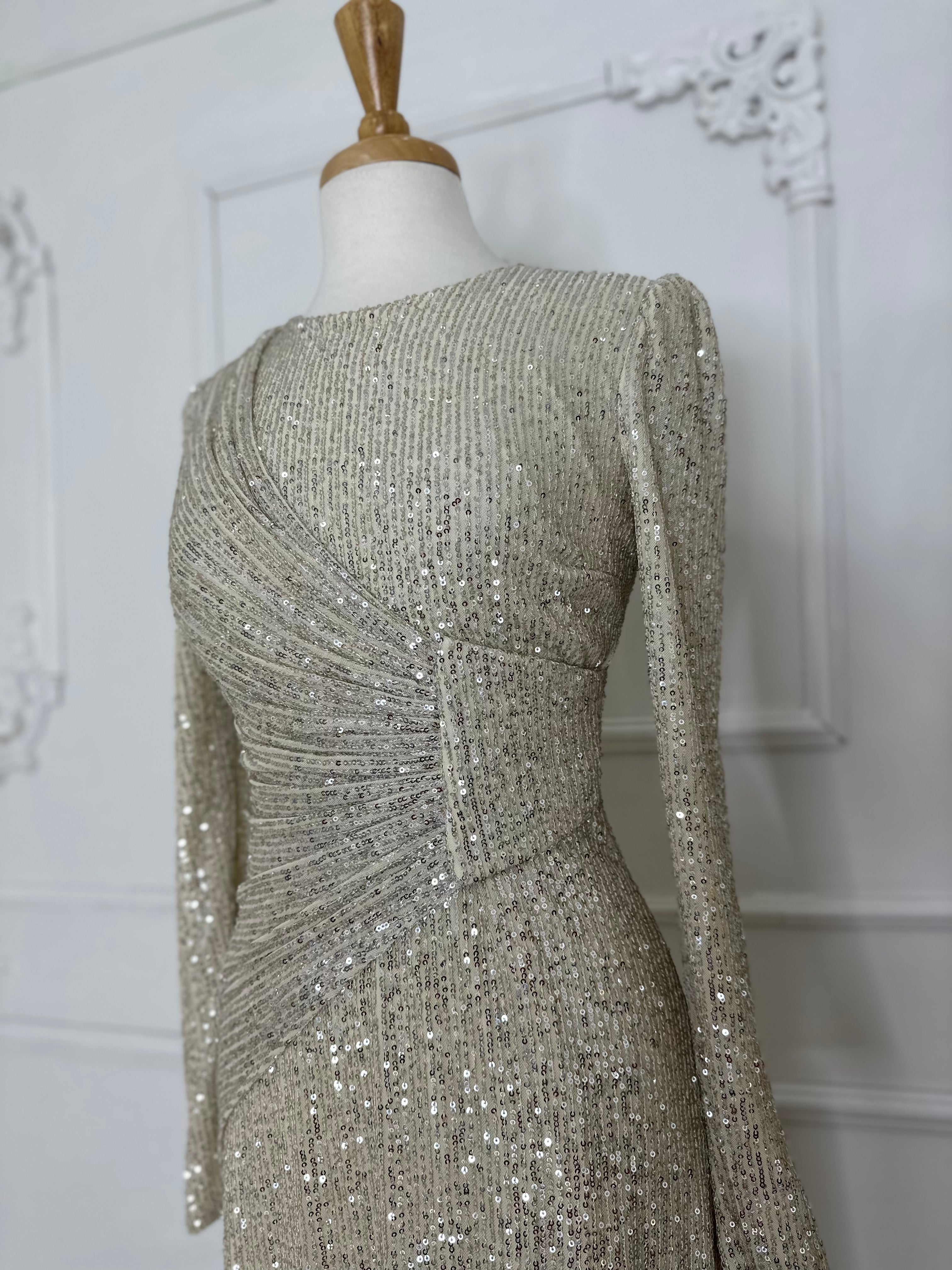 ZEYNAH Dress embellished in all over sequins that shine iridescently in the light